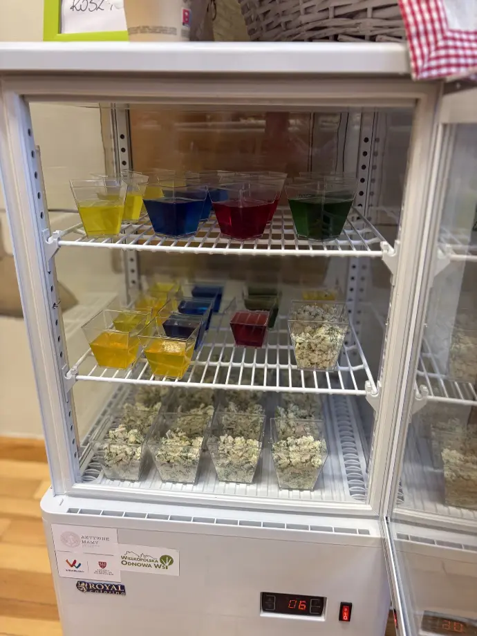 ✨witryna chłodnicza: serwowane dania na zimno tj. kolorowe galaretki dla dzieci i tradycyjna sałatka warzywna